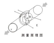 測量流量時,導(dǎo)電性液體以流速V流過垂直于流動方向的磁場,導(dǎo)電性液體的流動感應(yīng)出一個與平均流速成正比的電壓,其感應(yīng)電壓信號通過與液體直接接觸的電極檢出。對于同一流量計S、B、d為常量,所以流量與感應(yīng)電動勢E(或流速V)的大小成正比。