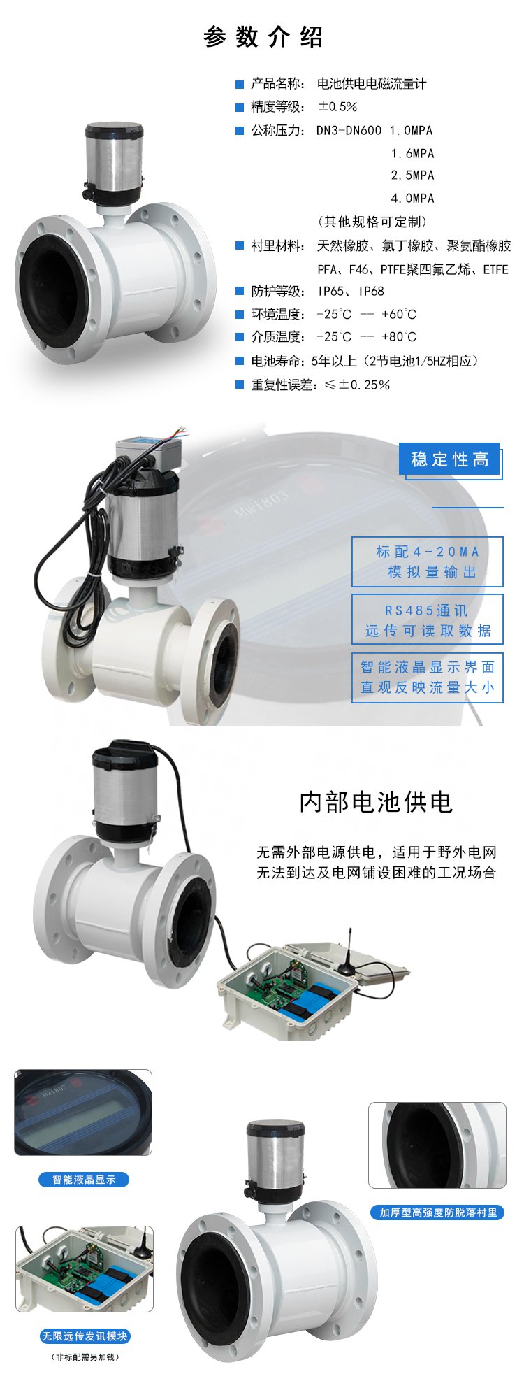 6. 測量穩(wěn)定:測量精度不受被測介質(zhì)溫度、壓力、粘度、密度等物理參數(shù)變化的影響。